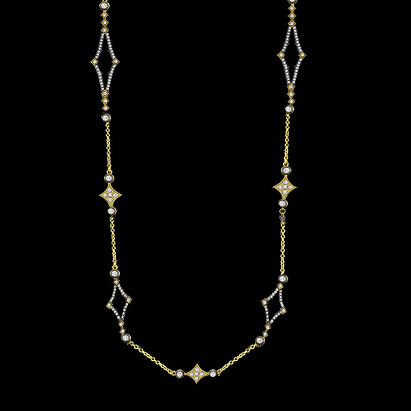 This 36″ necklace is just gorgeous in person! When I saw it, my mouth dropped – no kidding. The gold and black make each element stand out and you can’t help but say WOW!