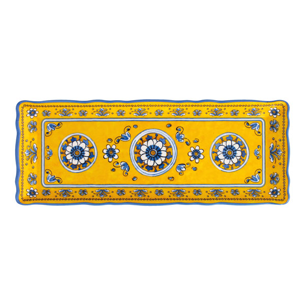 Our Benidorm Baguette tray is the perfect serving piece for your favorite breads or can multi task as a small side dish serving piece. Made of exceptional weight with a lightly textured surface giving it the feel and appearance of real ceramic. BPA Free 100% melamine, shatter resistant and dishwasher safe, top and bottom rack, as with all melamine, not recommended for microwave. Product includes 1 x Baguette Tray with dimensions of 15″ by 6″.