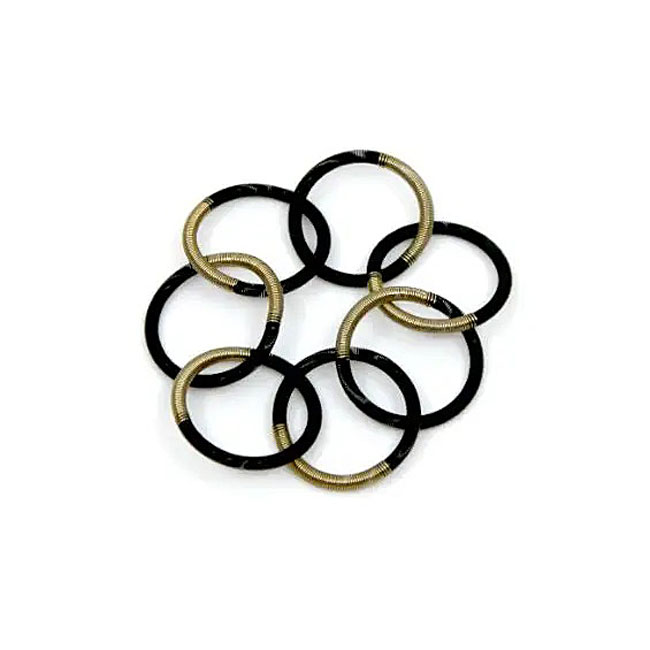 Black and bronze piano wire loops are interconnected in this bracelet. Very stretchable to fit any wrist and very lightweight.