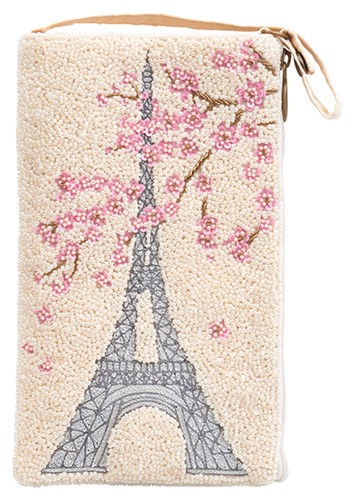 Let this bag take you away to the beauty that is Paris in Bloom. It features a gorgeous pairing of both embroidery and hand beading techniques. Club Bags are the ultimate functional fashion accessory. Each Club Bag is made to hold smart phones of all sizes. Use it as a wristlet or unsnap the shorter handle to attach it to a larger bag or belt loop. Additional features include a cross body strap and a side zipper pouch for your personal belongings.