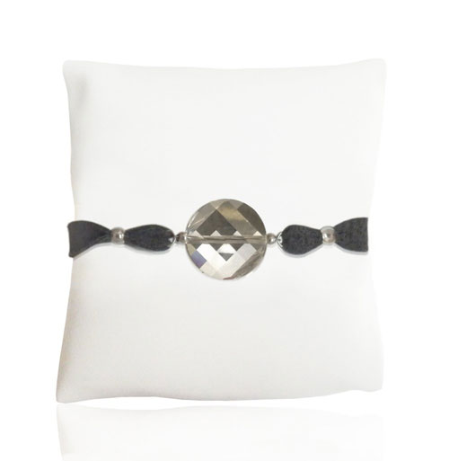 Handcrafted of Ultrasuede®, Swarovski® crystals, adjustable Hematite semi-precious stone closures, & Sterling Silver accents