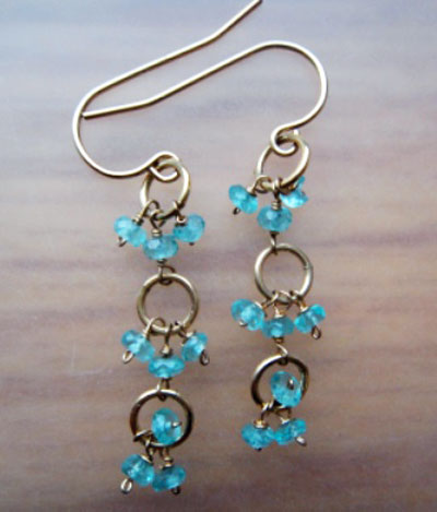 Real stones (Apatite) dangle from the small circles of this 14K gold filled earring. Beautiful! Delicate!