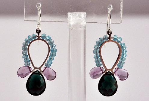 Semi-precious stones used in these earrings are Green Quartz, Amethyst, and Appatite
