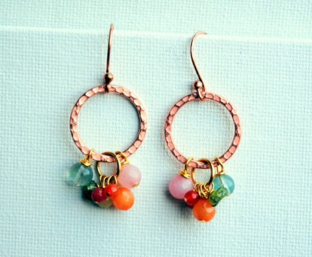 A copper ring is front and center for this fun charm dangle design, with gemstones that include citrine, peridot, jade and amber. Lead and nickel free.