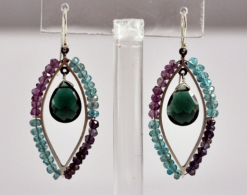 The stones used in this earring are Green Quartz, Appatite, Amethyst, and Iolite.