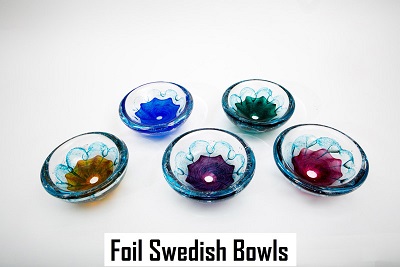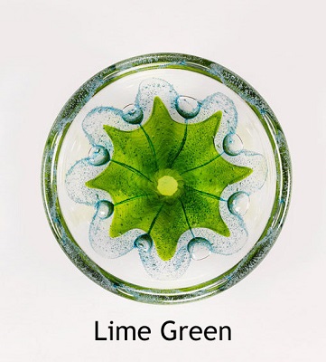 These thick shallow bowls are functional as well as beautiful works of art. With blue bubbles trapped artfully in the glass, these bowls are beautiful as decorative art pieces, a center piece to float flowers in at a table setting (e.g. gardenia, phalaenopsis orchid, peony, rose pedals), potpourri dishes, candy dishes and so much more. The uses of the Swedish bowl are bounded only by the imagination of the owner. The blue bubbles create a unique aspect to these objects.