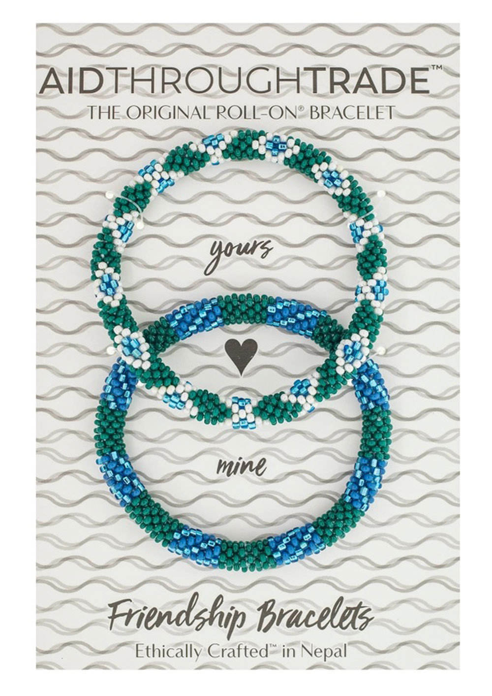 Our belize roll-on® bracelets will make your outfit un-belizeable. These fair trade bracelets will take you on the vacation of your dreams. The blue and greens of this set add a pop of color that could be just what you need to complete the perfect vacation aesthetic. – The original roll-on® bracelet – Set of 2 bracelets – 7” round – Lifetime guarantee – Ethically crafted by our women artisans in nepal – High quality glass beads and hand-dyed cotton thread – Expands over your hand to fit most wrists – Aid Through Trade is a founding member of the fair trade federation and is the only authorized provider of fair trade roll-on® bracelets -Perfect for fall!
