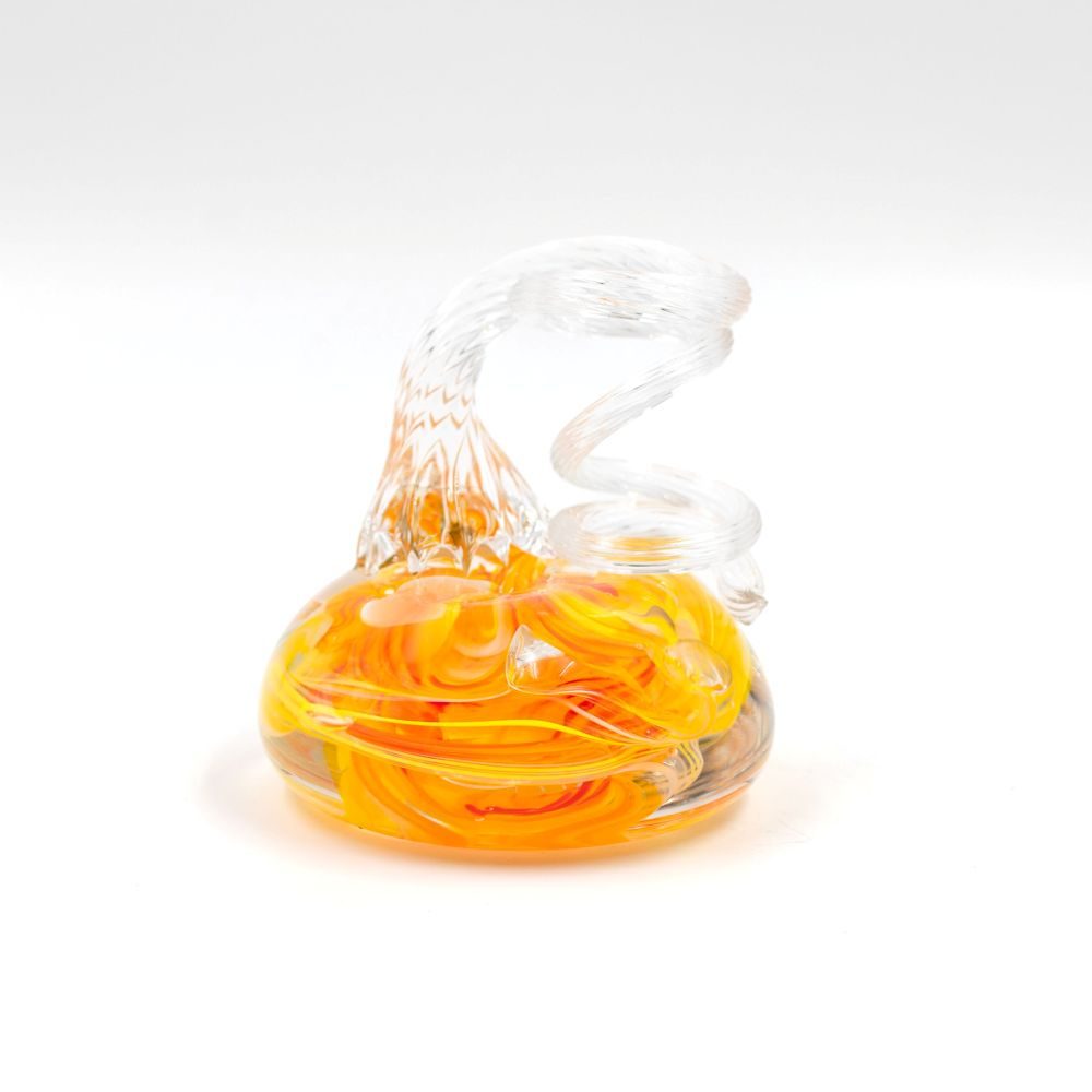 Crafted by seasoned glassblowers, each holder features a sculptural looping design that combines form and function. Designed to hold a standard-width pen or pencil, it’s a sleek and modern addition to any desk, counter, or tabletop.