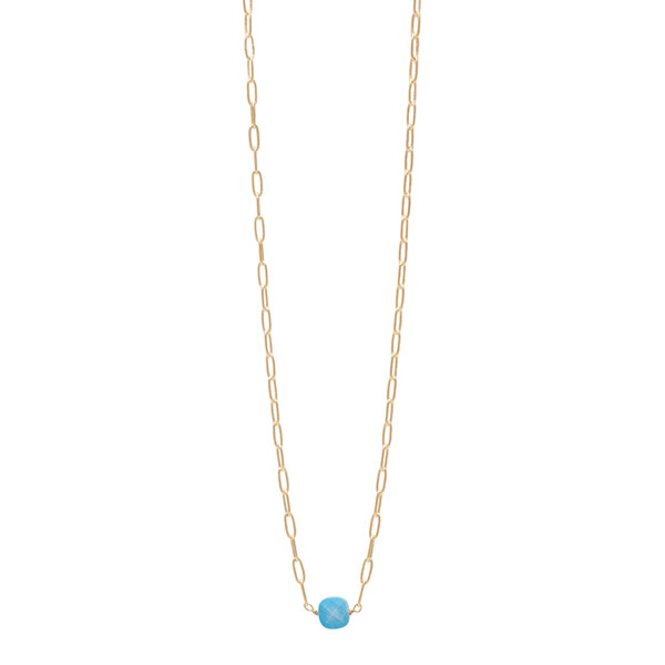 Layer this with a plain gold chain that’s longer or any other stone necklace you may have. The Square Turquoise stone is a beautiful drop at the bottom of this 14k fine gold plated necklace. It has a 2″ extender.