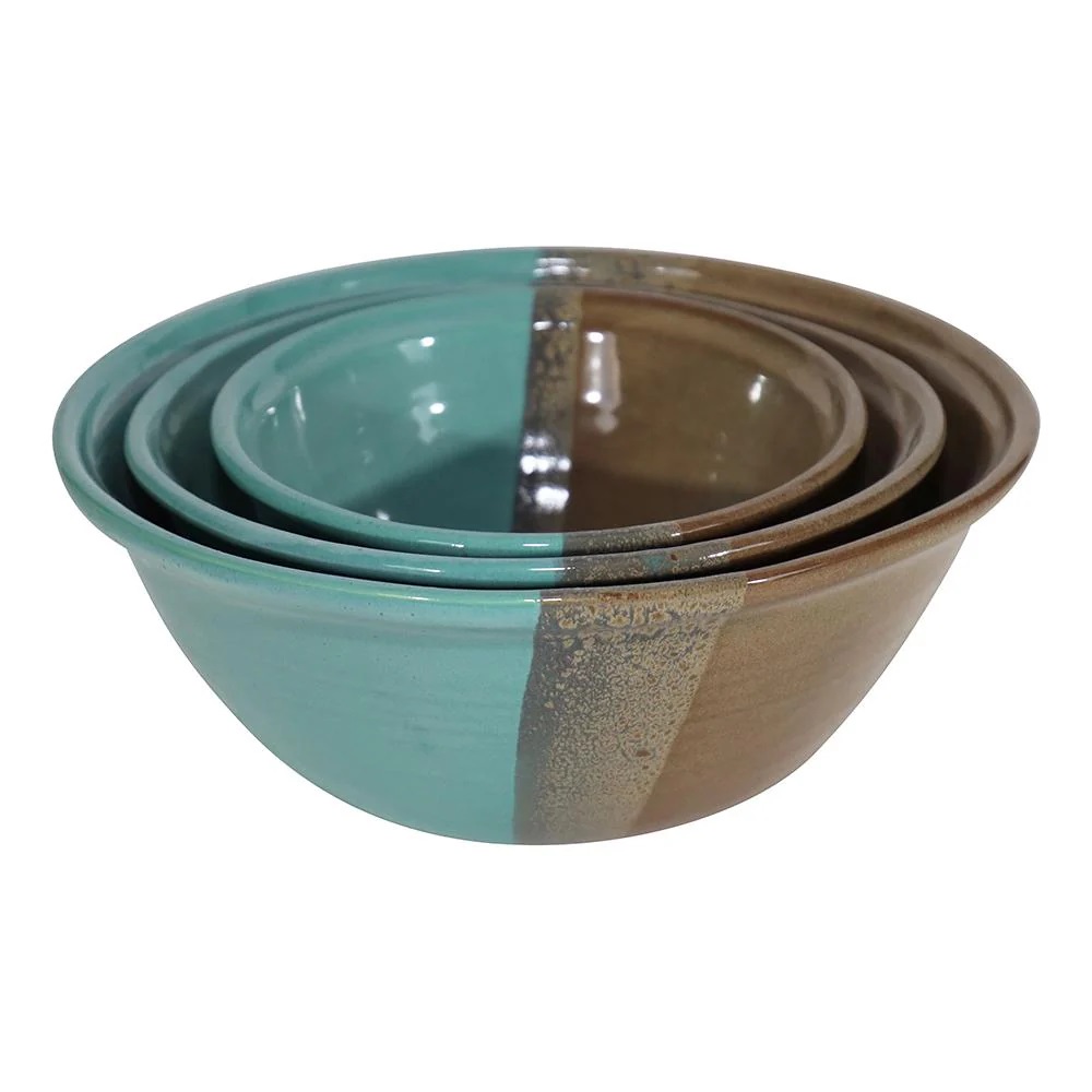 The color is called Island Oasis. Whether you need extra serving bowls, or are looking for food prep assistance, these nesting bowls are a flexible option for the kitchen. These expertly crafted ceramic stoneware pieces are created for everyday use and are great as housewarming or wedding shower gifts.