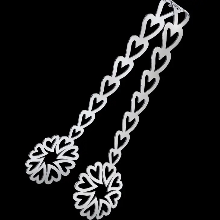 Shiny hearts dance around our Heart to Heart Tongs to create a joyful & timeless pattern celebrating all kinds of love. Perfect for celebrating an engagement, wedding or special friendship. Serve cookies, brownies or side dishes with love! Handcrafted of food-safe stainless steel. Size 7″.