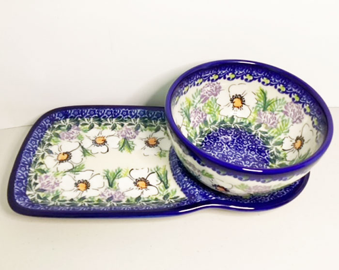 The bowl is also called an ice cream bowl, so the hostess set could be used for ice cream and cookies or dessert, as well as soup and sandwich. 10.5x5x3″