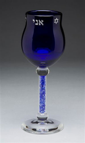 Create a memory that will become a treasured family heirloom. Gather the broken shards from the hand-blown wedding vessel, and have them integrated into this gorgeous Kiddush cup, designed by glass artist Faye Miller.