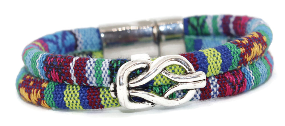 Just like your favorite jeans or cozy sweatshirt, SRJ’s Double Bracelet is oh-so-comfortable and easy to wear. Lightweight, loose and bangle-style, each bracelet consists of two 6mm cords of vegan woven cotton combined with a hypoallergenic slider bead and magnetic clasp. Nickel-free alloy. Fits 7″