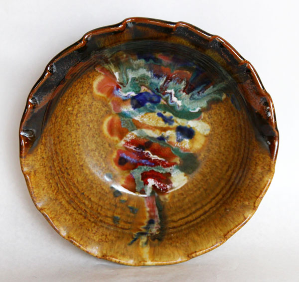 This beautiful ceramic Serving Bowl has a fluted edge, and is rich in organic earthy colors. It can be used as a large salad bowl or pasta bowl, or even a chip bowl. It also can be displayed as a work of art.