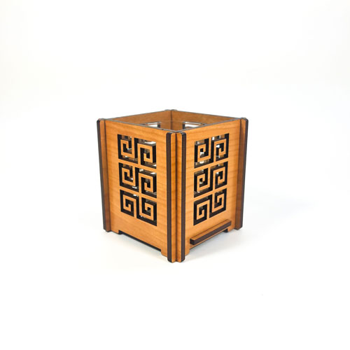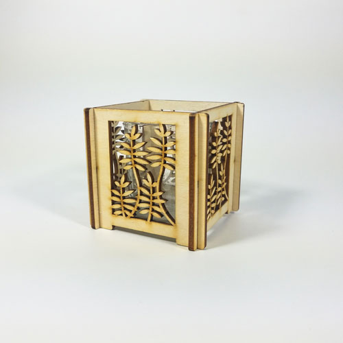 All of our home accessories are made of individual pieces that slot together without the need for fasteners. Putting them together like a 3d puzzle is part of the fun. This also allows us to ship them flat-packed, and is great for storage. Our products are packaged in a gift box with instructions for care and assembly. Please keep in mind that wood is a natural product and there is a range of variation in the color and shading of each sheet. The actual color may be slightly lighter or darker than shown in the photographs. Also, each votive has a bottom, so the glass candle is not sitting on a bare surface.