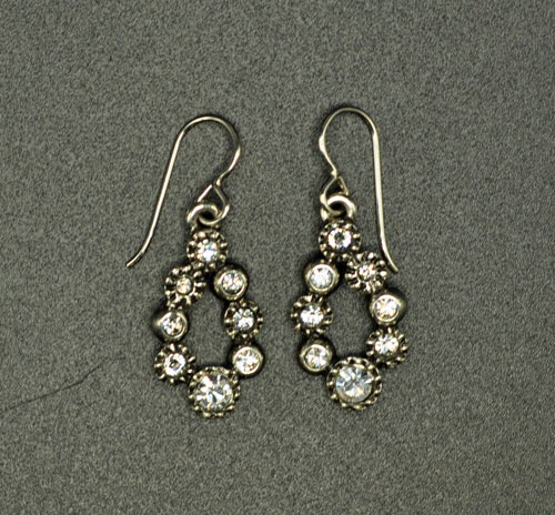 The blend of metal, shapes and textures with a touch of whimsy are the signatures of this line. This earring can go with anything – don’t save it for “dressy”. Wear it with jeans because it’s just plain fun! Varying geometric shapes and sizes of crystals adorn this teardrop earring. Length: 1.25″