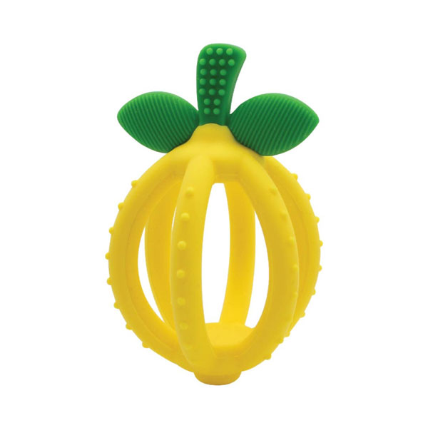 Sore gums are no match for the Itzy Ritzy Bitzy Biterâ„¢ Teething Ball! This multi-texture teether is perfect for providing comfort as it soothes your child’s emerging teeth and calms sore, swollen gums. It also acts as a training toothbrush on the stem. The teething ball is shaped like a lemon and is made of non-toxic food grade silicone. The open design makes it perfect for small hands to hold.