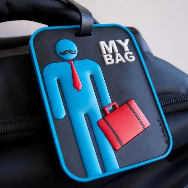 Our heavy duty and durable large 3-D Man luggage tag stands out and stays secure with a strong buckle strap and stands up to all abuse your luggage may encounter. It features a dapper gentleman and pairs well with our Woman luggage tag. It measures 4.25 inches by 3 inches with a .25 inch thickness. Bright colors and original artwork make your bag easy to spot in a crowd. The covered up address compartment in the back makes sure your identity is protected. All information is easily accessible once the strap is removed. Our tags are perfect for your luggage, but also great on a backpack, gym, golf, or over night bag.
