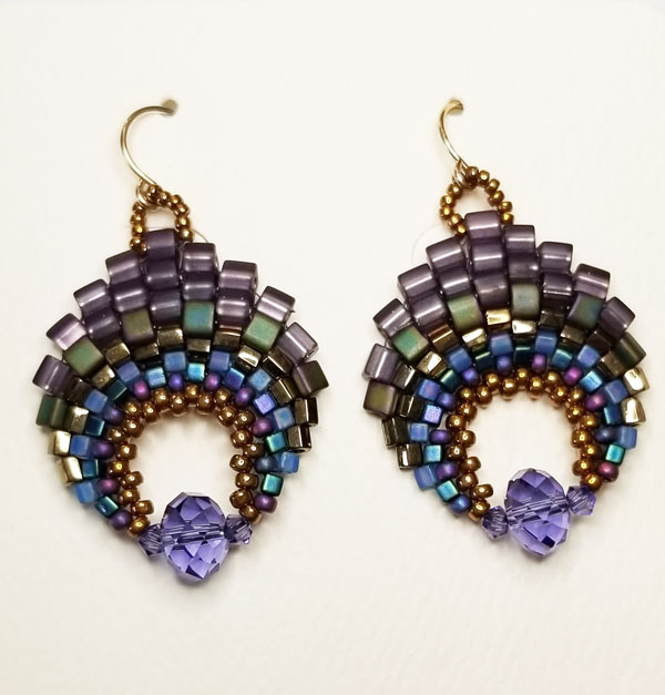 Take a look at the rainbow colors of the beads. Turn into a different light, and green may be prominent. Turn again, and blue or purple comes out. The single Briolette bead at the bottom adds class to this style.