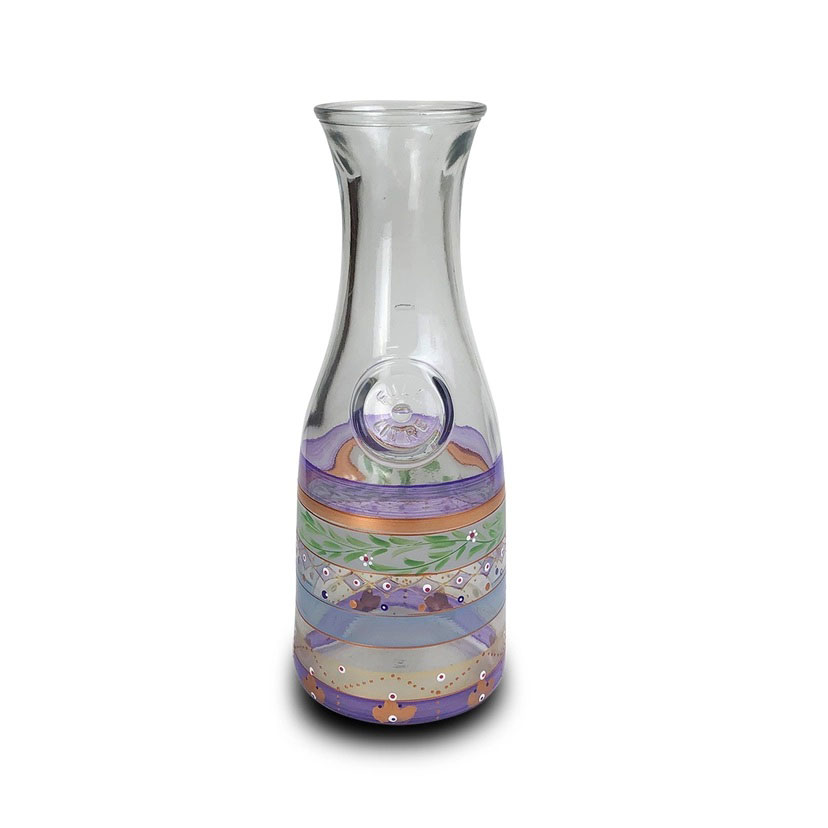 A 1 litre hand painted carafe. It can have many uses from serving wine and other drinks but also makes a lovely vase! Proudly hand painted in the USA! Handwash only!