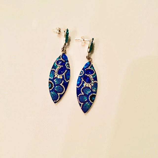 Every bead and stone is handset in this gorgeous post earring. Notice the florals and glimmering shades of blue stones and crystals. Length: 2.25″