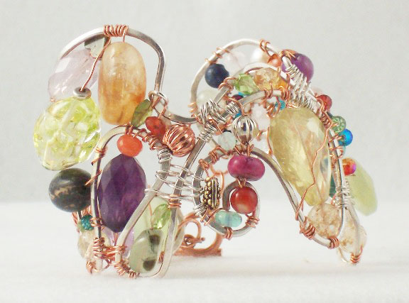 The color – the freeform design – the multitudes of stones and shapes are amazing. This bracelet was made for a small wrist – about 6″. It’s like wearing a piece of art on your wrist.