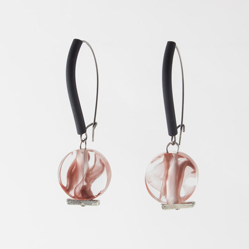 Murao relies on bold contours and defined shapes to render a pair of earrings fit for the fearless woman. With flawless curves, this piece of handmade jewellery captures rosey swirls in clear resin, showcasing a stunning nebula in a simple design. Length: 2″ Matches Necklace 434420