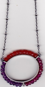 The stones in the oval we have in stock are Amethyst, Pink Garnet, and Carnelian. The picture shows the shape of the oval, but not the stones we currently have. If you like any of the necklaces in the picture, it can