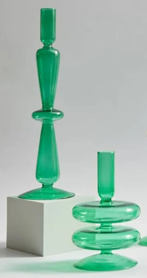 Northern European Aesthetic: Embrace the timeless elegance of Northern European design with these glass holders/vases. Their clean lines and cool green hue reflect the understated grace of this style. Dual-Use Versatility: These pieces serve a dual purpose as both candle holders and vases. Their versatility allows you to easily switch from one function to another, adapting to your changing decor needs. D is 12″ tall and C is 6.5″ tall.