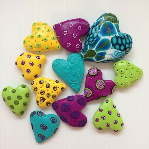 Handmade from polymer clay canework- These heart magnets are bright and colorful and full of love. Super strong rare earth magnet on the back. Unfortunately, it’s difficult to handpick these. You can specify a color (primary) but they are all individual.