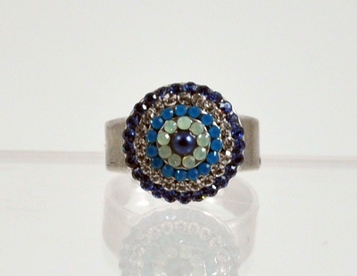 Each piece is hand crafted to the highest standard, layered with 18 carat rose gold, antique silver or antique gold. Mariana uses a colourful array of hand-made crystals, hand-cut gem stones and fabric beads combined with Swarovski crystals some of them antique and over 100 years old.