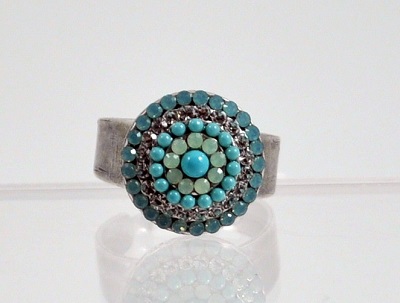 Adjustable to almost any size. Some of the pictures don’t show the true reflection of the stones. Some of the colors actually reflect whatever you are wearing, so we tried to do our best with the lighting.