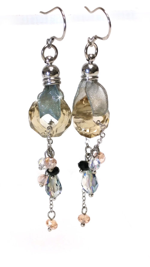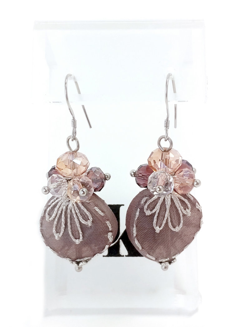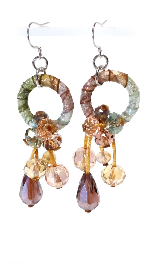 This assortment of silk ribbon Earrings, matches 6 of the necklaces we have in stock. They can be worn alone, or make a full statement with the matching necklace. Jacqueline is proud to bring to her home in Canada, a collection of timeless favorites and fairy tale classics! Her trend-setting jewelry lines feature a dynamically styled array of necklaces and earrings, from delicate to bold, or carefree to classic, with many hand crafted with Swarovski elements, for stylish expressions.