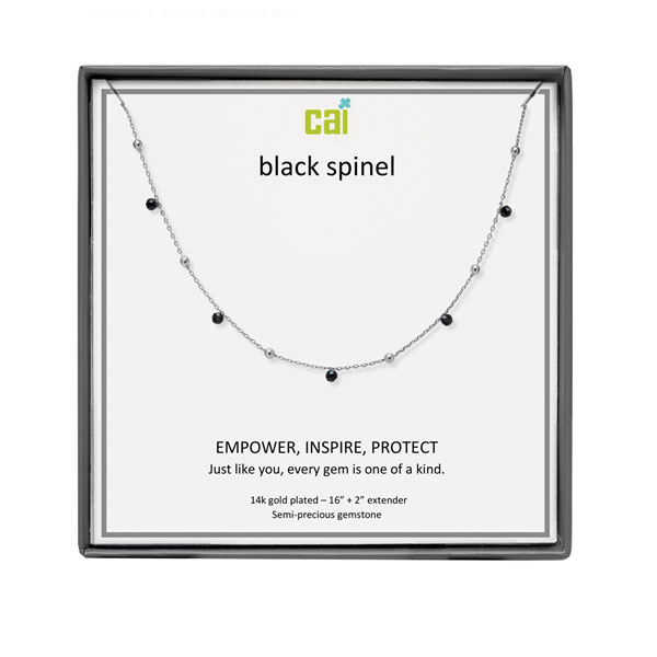 The delicate gemstone necklace is quite the rage in 2022. This fine silver plated necklace is 16″ with a 2″ extender, and the gemstone is black spinel, alternating with silver balls.