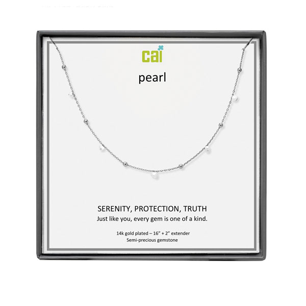 2022 is the year of the delicate necklace, and this fine silver plated, 16″ necklace with pearls alternating with silver balls is a great example. It also has a 2″ extender.