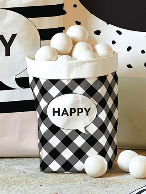 Don’t be deceived. This bag is sturdy. It’s also pliable so it can hold anything from food, trinkets and more in this clever and eye-catching multipurpose holder made from durable paper material.