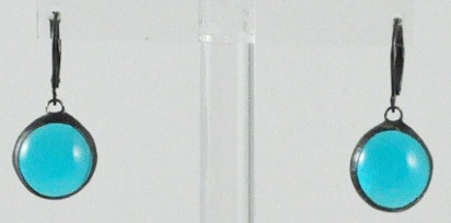 3/4″ Stained glass Turquoise earrings dangling from a lever-back gunmetal silver ear wire