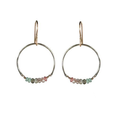 The gemstones are: Labradorite, Amazonite, Pink Mystic Quartz, and Pink Tourmaline, with Rose GF accents (ear wires)