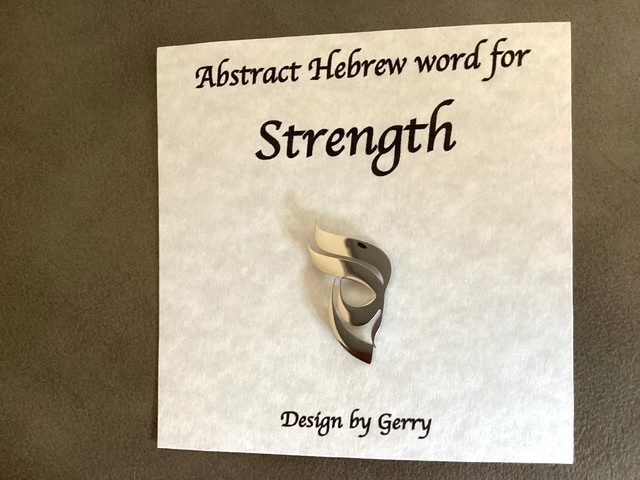 This is Gerry’s most recent design. He creates the abstract Hebrew symbol for strength, a beautiful gift to give to friends going through difficult times. Size: 1.5″long x 3/4″ wide. Made of stainless steel.