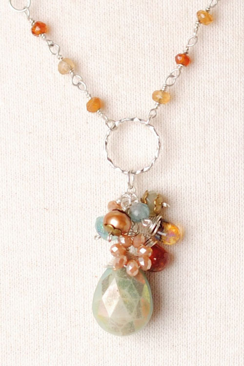 Show off the warmth of summer’s colors with this simply elegant and fun necklace! Pearls and gemstones are set with sterling silver, with a gemstone cluster pendant.