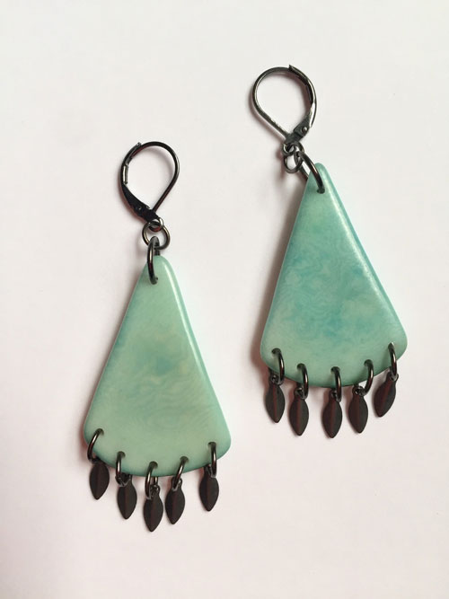 Tagua (TOG-wa) nut beads are made from the fruit of a palm tree from the S. American rainforests. This ecofriendly product helps sustain rainforests by harvesting a renewable resource without damaging the trees. This earring matches N2a Assymmetrical Necklace and N3#1 Necklace. Length: 2.25″