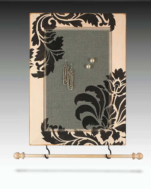 Traditional Damask patterns date back to the Middle Ages and nowadays appear most commonly in table linens, clothing and furnishings. We now feature one of these popular designs on our hand-painted Square Earring & Jewelry Organizers.