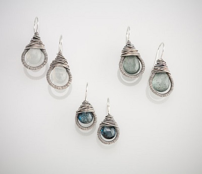 Oxidized Sterling Silver with either Moonstone or London Blue Topaz (will be smaller in size)…. made to order…. can also do other stones, just ask…..length is @1-1.5inch depending on stone choice/size. Moonstone has copper wiring on top but sterling wrapped at bottom.
