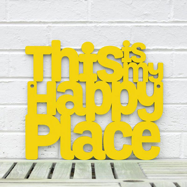 “I hope you are lucky enough to have your very own happy place. I’ve got a couple – one being my super girly workshop where I make happy signs like this.”