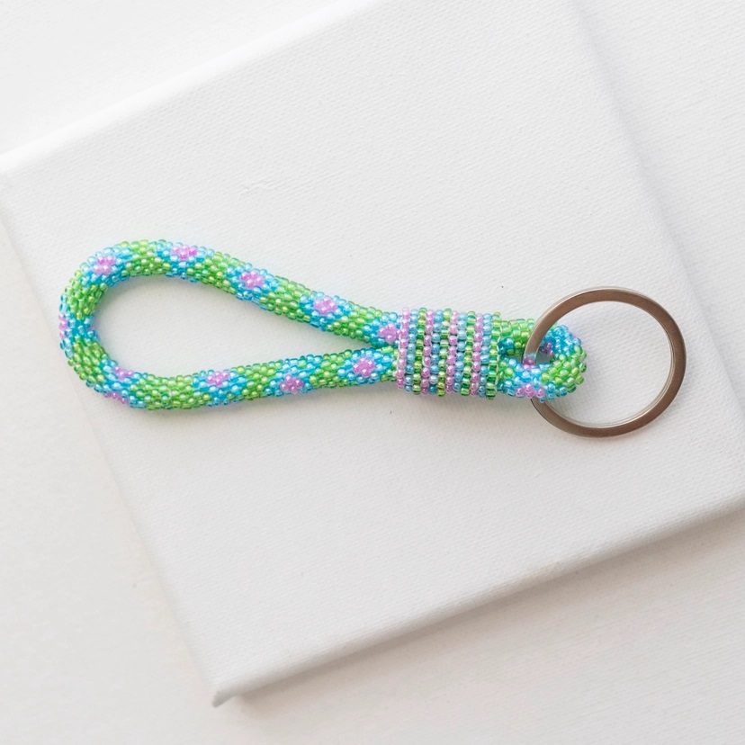 Add a little style to your keys with The Original Roll-On® Keychain! – Ethically Crafted by our women artisans in Nepal – High quality glass beads and hand-dyed cotton thread – Fob style keychain (not designed to be worn around the wrist)