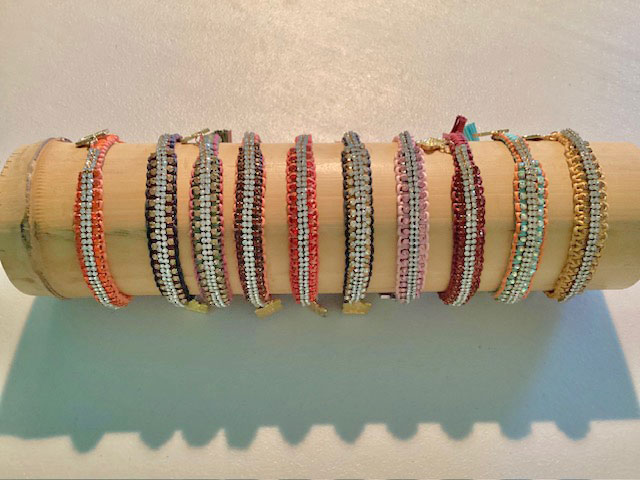 Rose Gonzales is a handcrafted fashion accessories line with a bohemian vibe and a touch of chic rocker flair. Our jewelry line is handmade with crystals, metal, leather or charms, and is available in a wide variety of color stories for every personality. This series is all about glitz – two colors of strands with crystals!