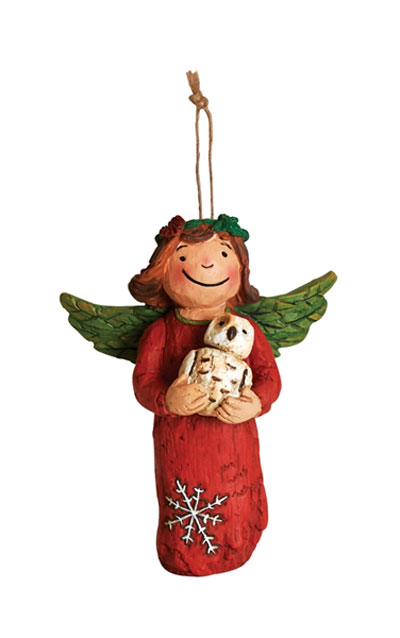 This beautiful angel ornament is carefully modeled after its hand-carved original created by artist Laura Benge. Made of resin and hand-painted, this ornament will make an unforgettable gift. Designed to hang or stand on its own, these figures offer a fresh take on traditional ornaments and will be a special reminder of encouragement, gratitude, and more. Dimensions: 3.25″w x 4.5″h