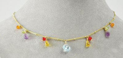 Gorgeous semi-precious stone necklace with a delicate ball and chain . The center stone is blue topaz, which is the stone of compassion, kindness, and empathy.