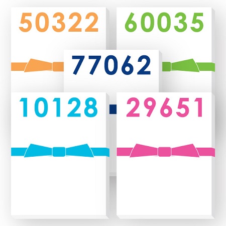 Bold Zipcode Mini Notepads, 4.25 x 5.5 and include 50 pages. We have in stock zipcode 43230 (Gahanna, OH) in Shocking Pink and Bexley 43209 in Shocking Pink, Green and Navy. You may special order any other zipcode. (Minimum order of this size and style is 3 pads)